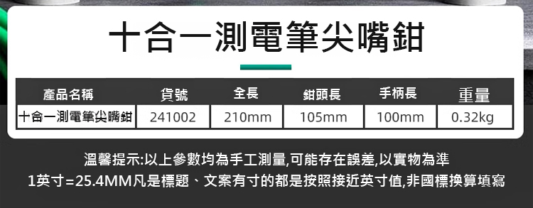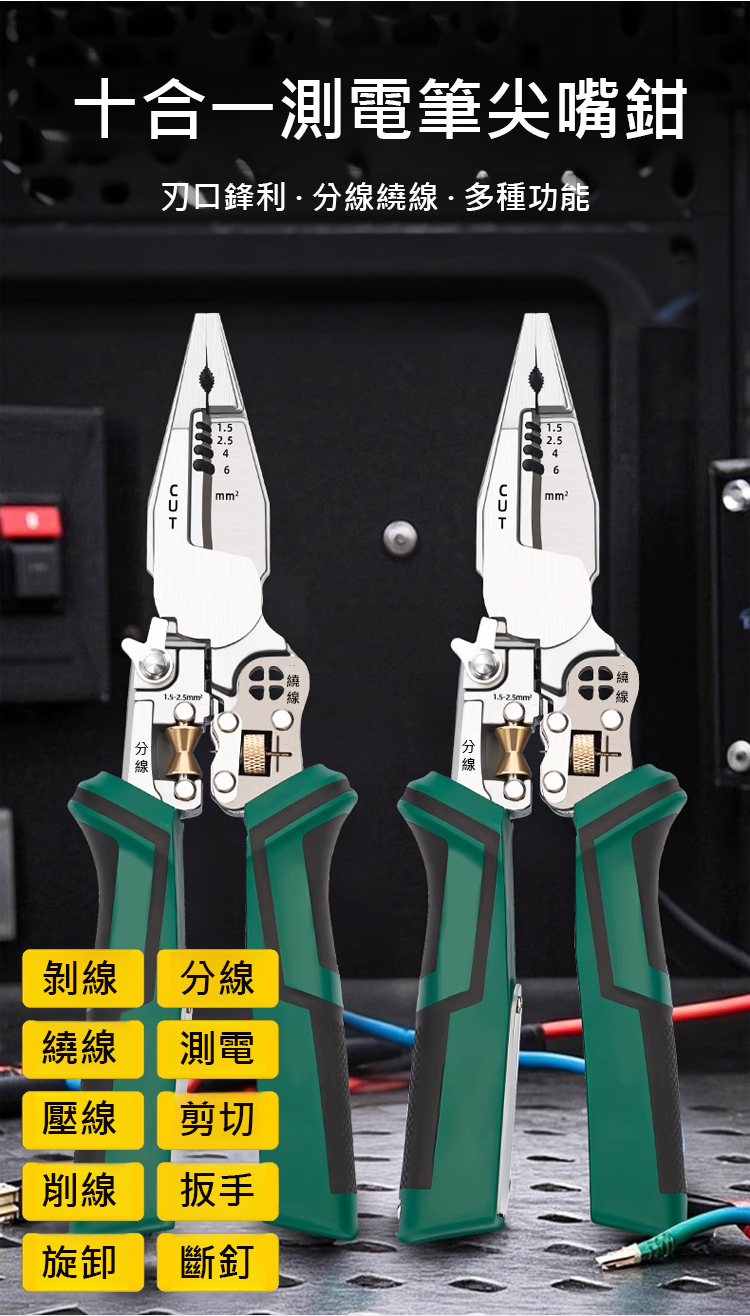 【十合一】多功能尖嘴測電剝線鉗